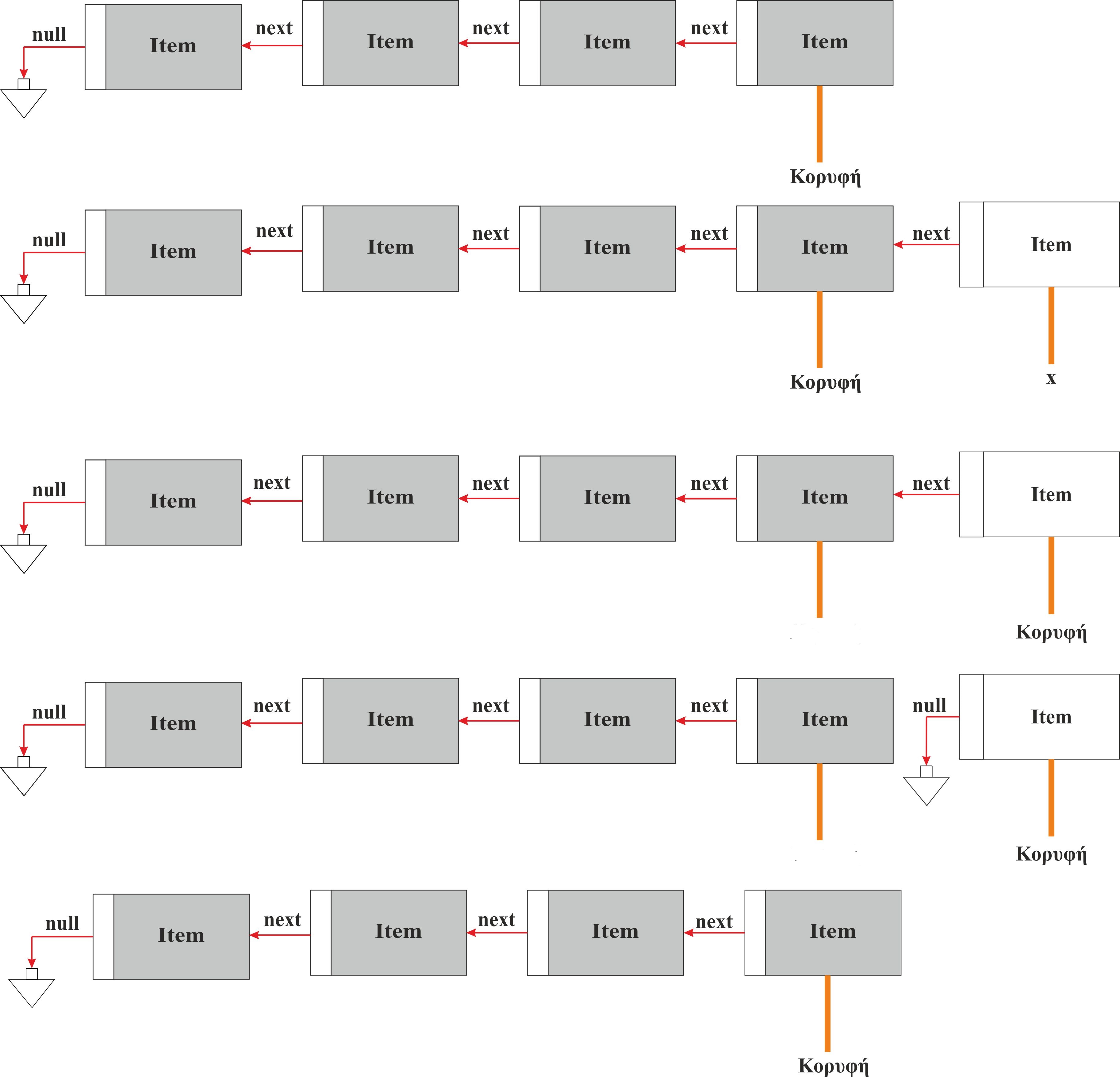 push(x) Ενθέτει το στοιχείο x στην κορυφή της στοίβας
